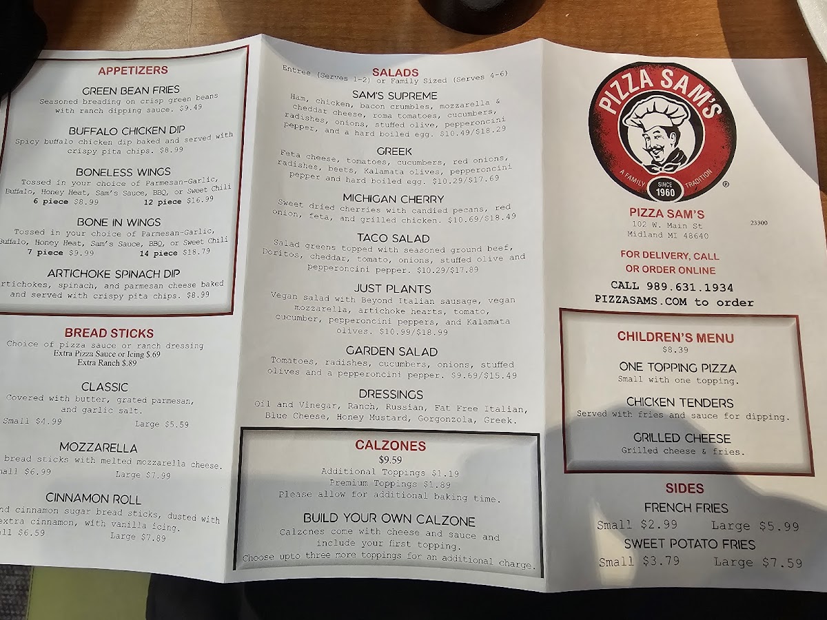 Welcome to Pizza Sam's Midland, a delightful spot located at 102 W Main St, Midland, MI. This cozy eatery is all about making pizza lovers' dreams come true. The menu is a symphony of flavors featuring specialty pizzas that cater to diverse tastes. The Pizza Sam's Special combines pepperoni, mushrooms, and green olives, while the Vegetarian Special pleases even the most discerning plant-based diners with a medley of stir-fried veggies and a signature olive oil base.